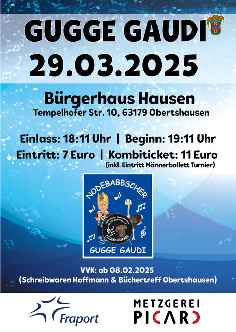Die Karten kosten EUR 7,- (Kombiticket für Männerballett-Turnier und Gugge-Gaudi EUR 11,-)